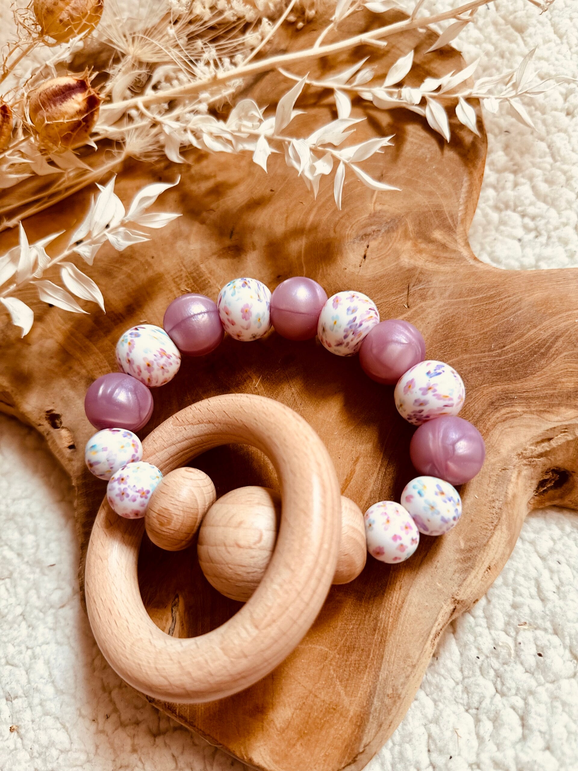 Deze bijtring wekt de interesse van jullie kleintje. Mooie siliconen kralen met een paar hout accenten. Ligt fijn in de kleine handjes. De houten ring verzacht het tandvlees bij doorkomende tandjes.