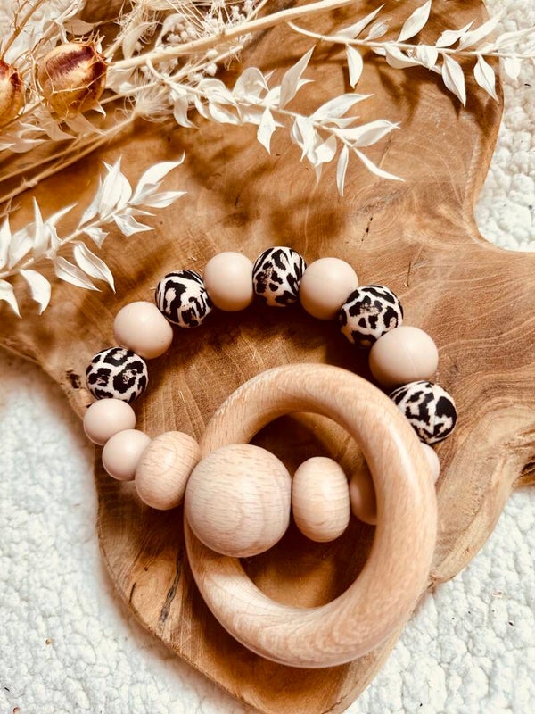 Deze bijtring wekt de interesse van jullie kleintje. Mooie siliconen kralen met een paar hout accenten. Ligt fijn in de kleine handjes. De houten ring verzacht het tandvlees bij doorkomende tandjes.