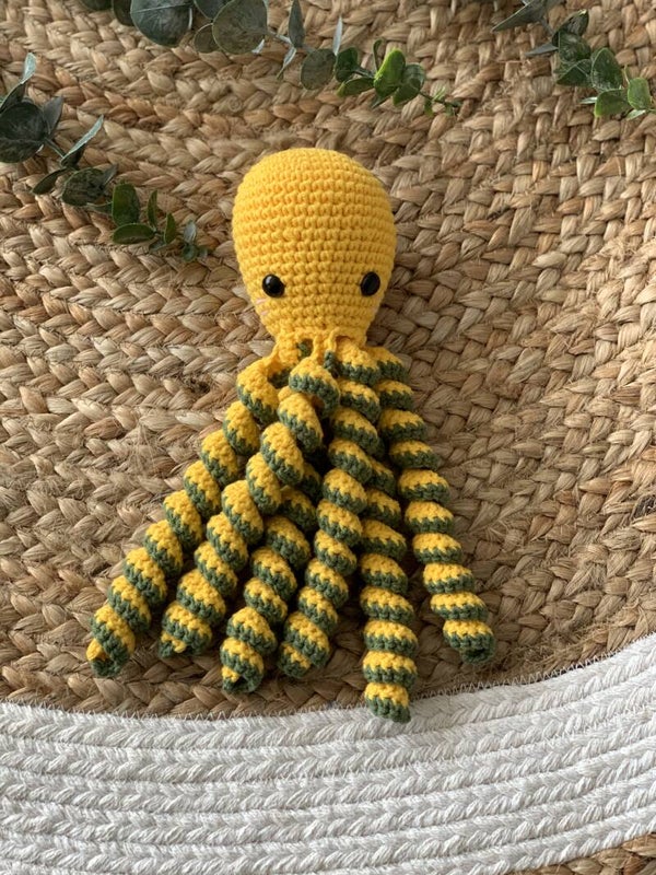 De Octopus is in gewenste kleuren te haken. Kies de kleur van je octopus, de extra kleur komt rondom de tentakels. Bij opmerkingen kunt u nog evt wensen vermelden.