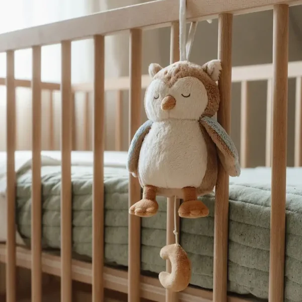Ga maar lekker slapen. Deze vriendelijke uil leidt je naar een droomwereld vol verwondering en verbeelding. Creëer een vaste routine voor bedtijd met de betoverende melodieën van deze schattige muziekdoos. Trek aan het kleine maantje en het rustgevende slaapliedje begint te spelen terwijl je kleintje heerlijk in slaap dommelt. Een prachtig cadeau en een mooie decoratie voor de babykamer.