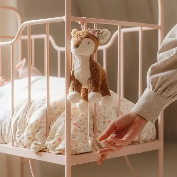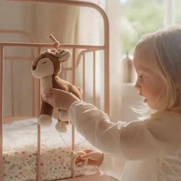 Ga maar lekker slapen. Dit slapende hertje leidt je naar een droomwereld vol verwondering en verbeelding. Creëer een vaste routine voor bedtijd met de betoverende melodieën van deze schattige muziekdoos. Trek aan de houten ring en het rustgevende slaapliedje begint te spelen terwijl je kleintje heerlijk in slaap dommelt. Een prachtig cadeau en een mooie decoratie voor de babykamer.