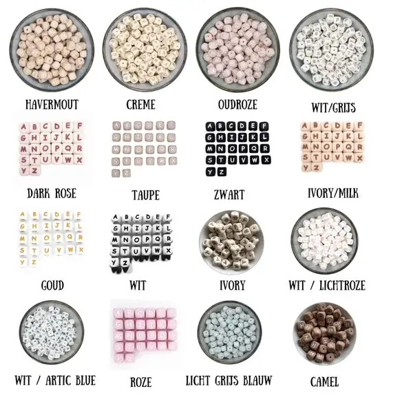 Letterkralen met leestekens zijn niet in iedere kleur leverbaar houdt hier rekening mee dat er dan een letterkraal zonder leesteken wordt gebruikt.