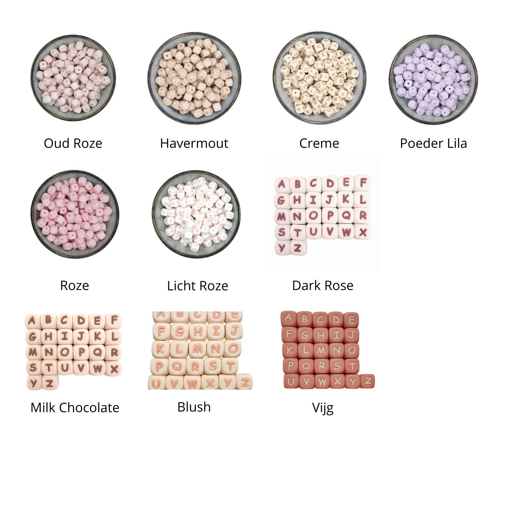 Letterkralen met leestekens zijn niet in iedere kleur leverbaar houdt hier rekening mee dat er dan een letterkraal zonder leesteken wordt gebruikt.