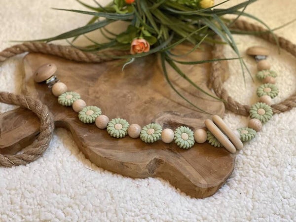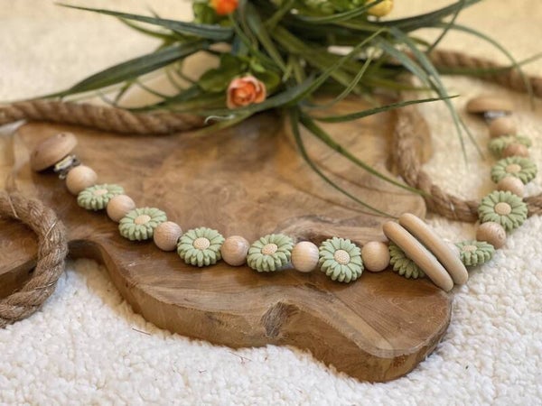 Een prachtige wagenspanner met margrietjes. De wagenspanner wordt bevestigd dmv clips. Aan de wagenspanner hangen 2 houten ringen om het interessant te houden voor jullie kleintjes. Zo kunnen ze geluid maken als ze de wagenspanner aanraken. Goed voor hun oog hand coordinatie.