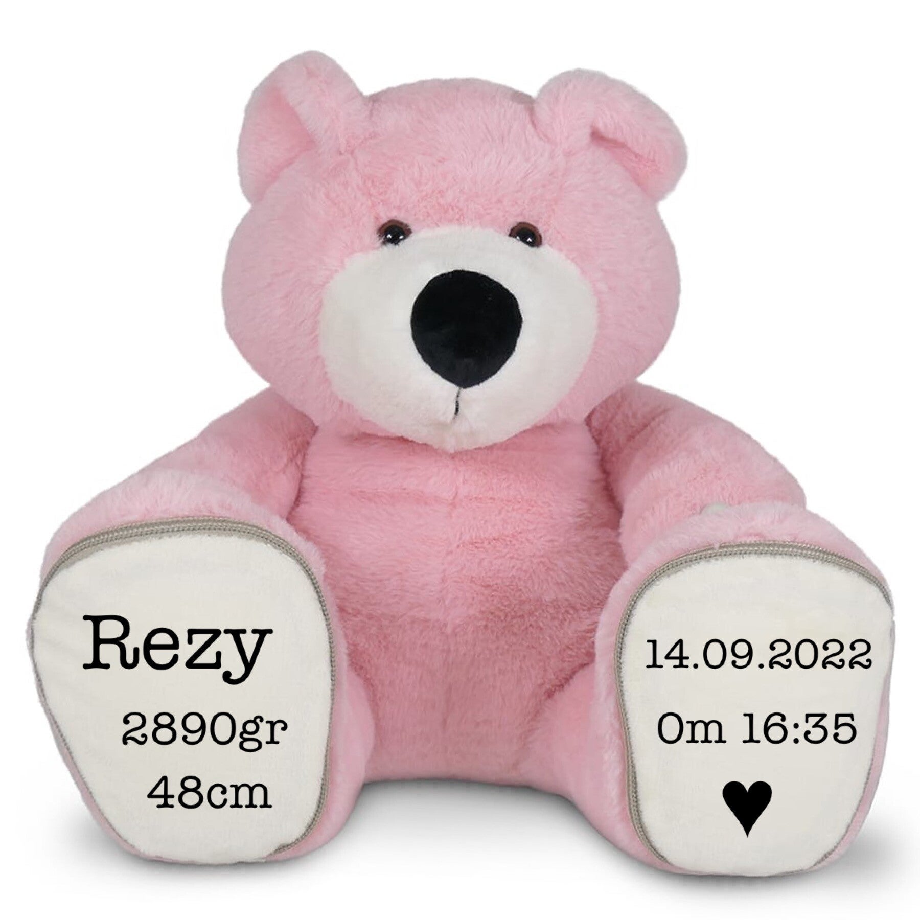 Van deze leuke Funnies knuffel kunnen de zooltjes d.m.v. een rits verwijderd worden. Ze worden bedrukt met de geboortegegevens. Vul de gegevens in die u graag wil terug zien op de zooltjes. Dit kan/mag ook alleen de naam zijn. Voor andere wensen graag dit bij opmerkingen noteren. De bedrukking is met zwart vinyl graag een ander kleur, vermeld dit dan bij opmerkingen en dan kijk ik wat ik voor U kan doen.