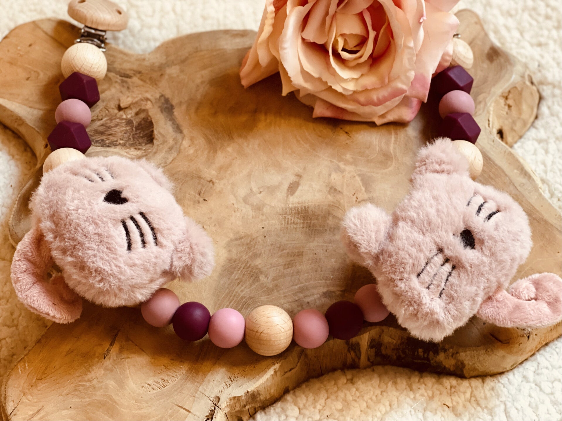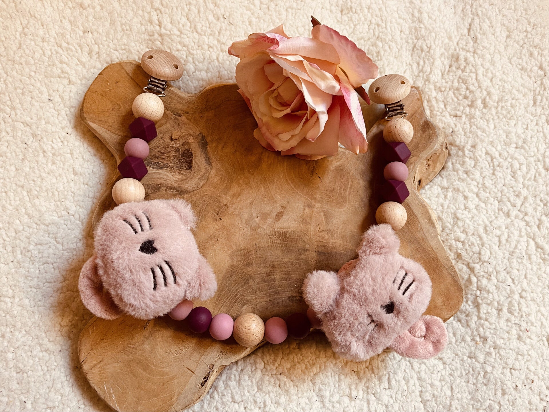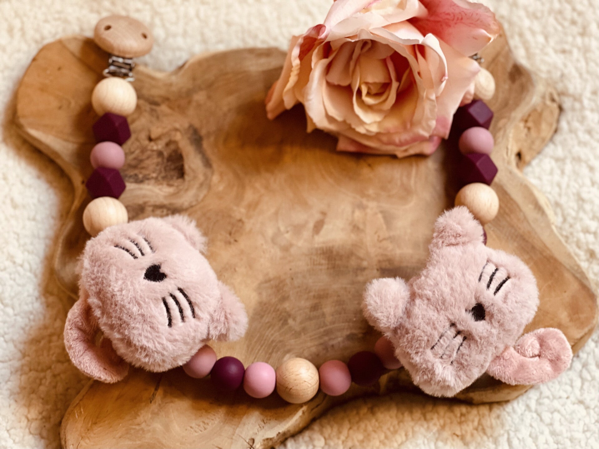 De wagenspanner bestaat uit 2 poesjes met een combinatie van meerdere soorten kralen waaronder hout en siliconen kralen. Deze combinatie zorgt voor een speelse en hippe look. In de poesjes zit een rammelkraal wat een muzikaal effect geeft als de wagenspanner beweegt.