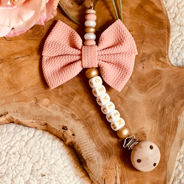 So girly de speenkoorden met strik en ook nog onwijs leuk om deze te personaliseren met NAAM. Je kleintje raakt zo nooit meer haar speentje of speenkoord kwijt.